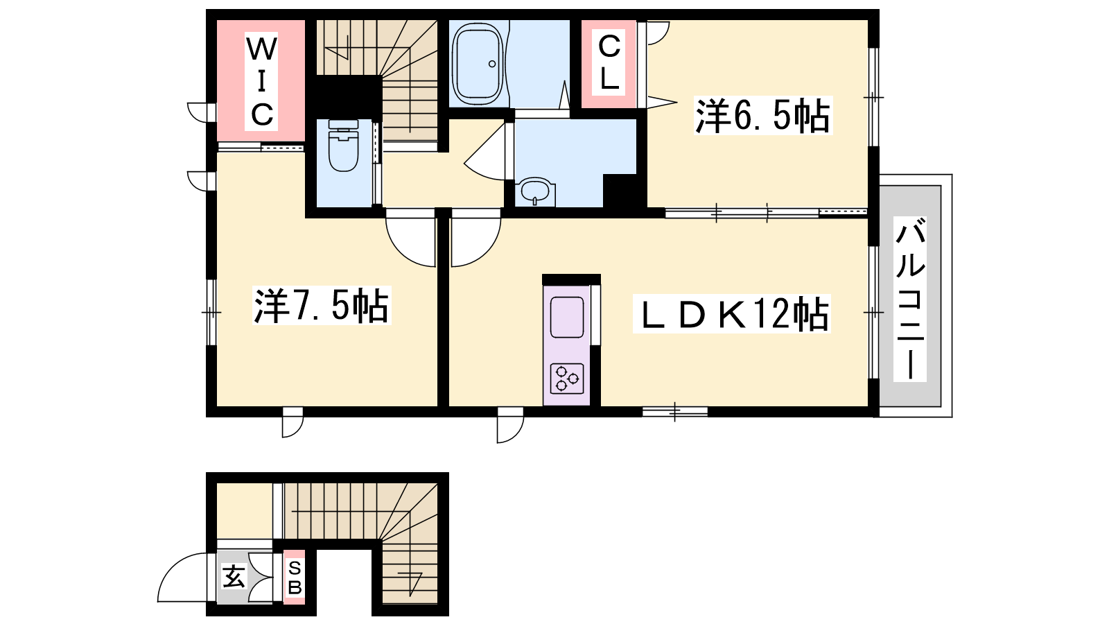 - LDK12帖、洋室7.5帖、洋室6.5帖