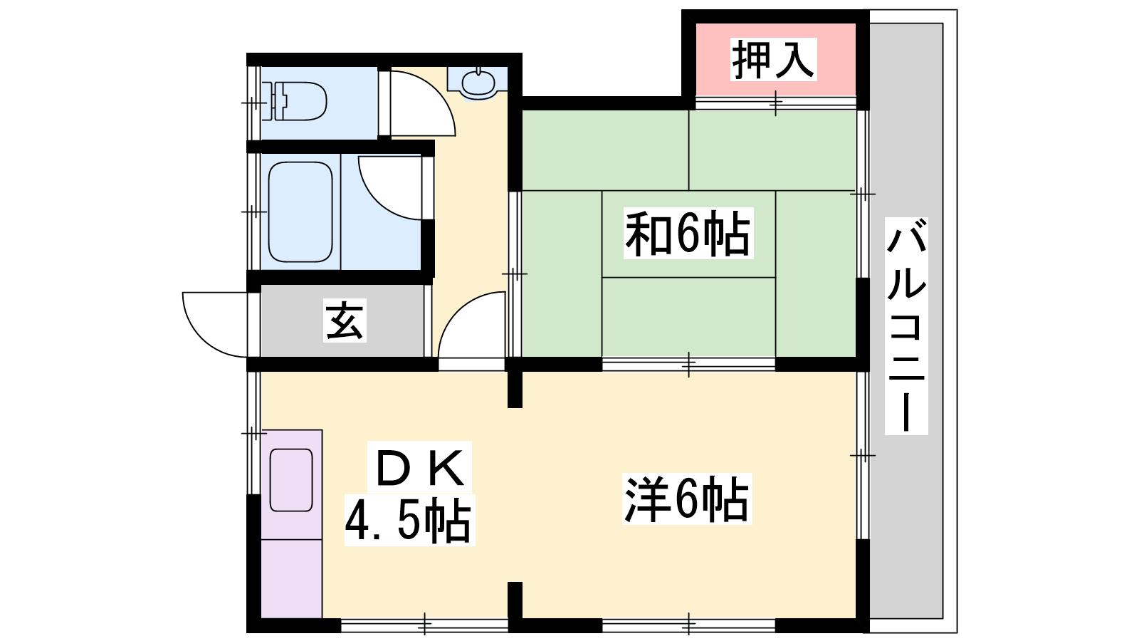 - DK4.5帖、洋室6帖、和室6帖