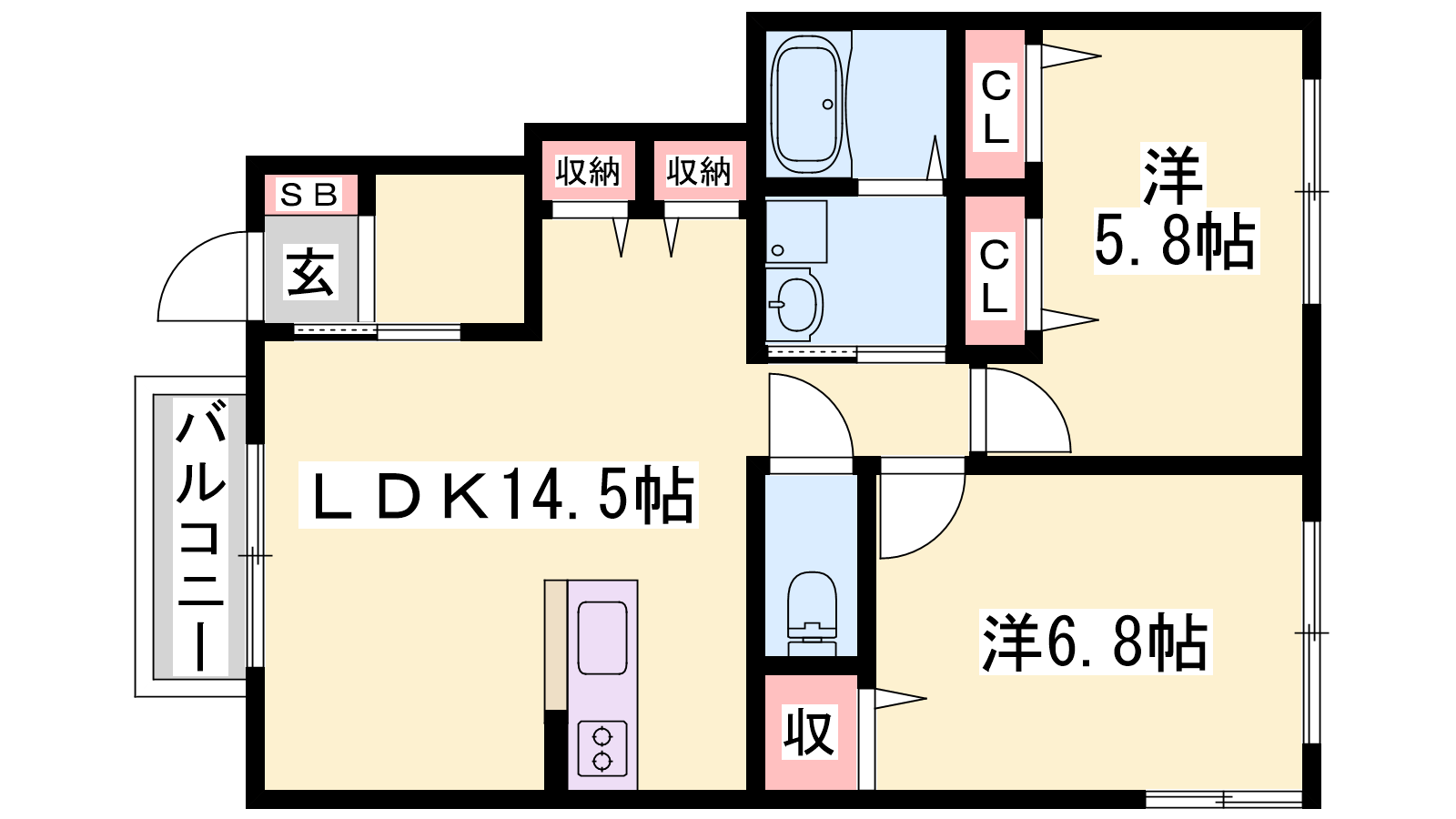 - LDK14.5帖、洋室6.8帖、洋室5.8帖