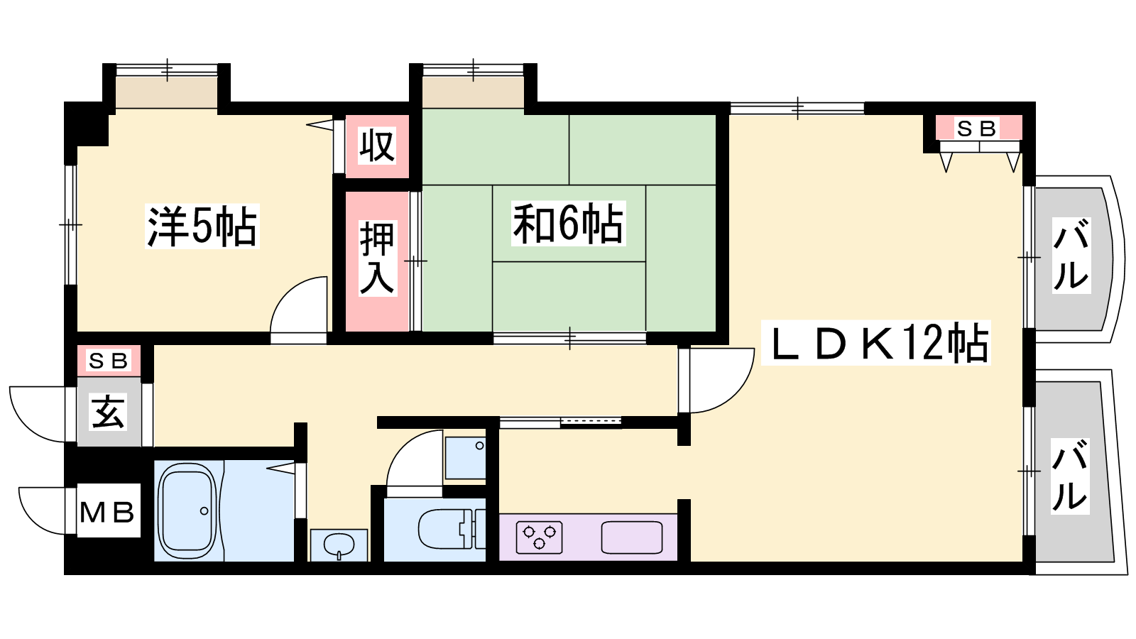 - LDK12帖、洋室5帖、和室6帖