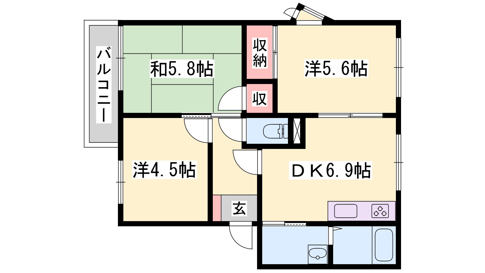 - DK6.9帖、洋室4.5帖、和室5.8帖、洋室5.6帖