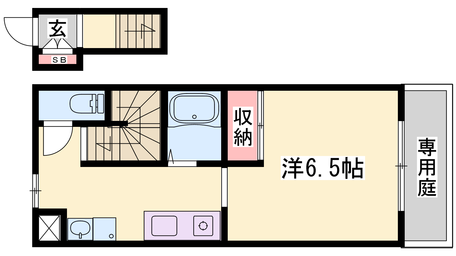 - K2帖、洋室6.5帖