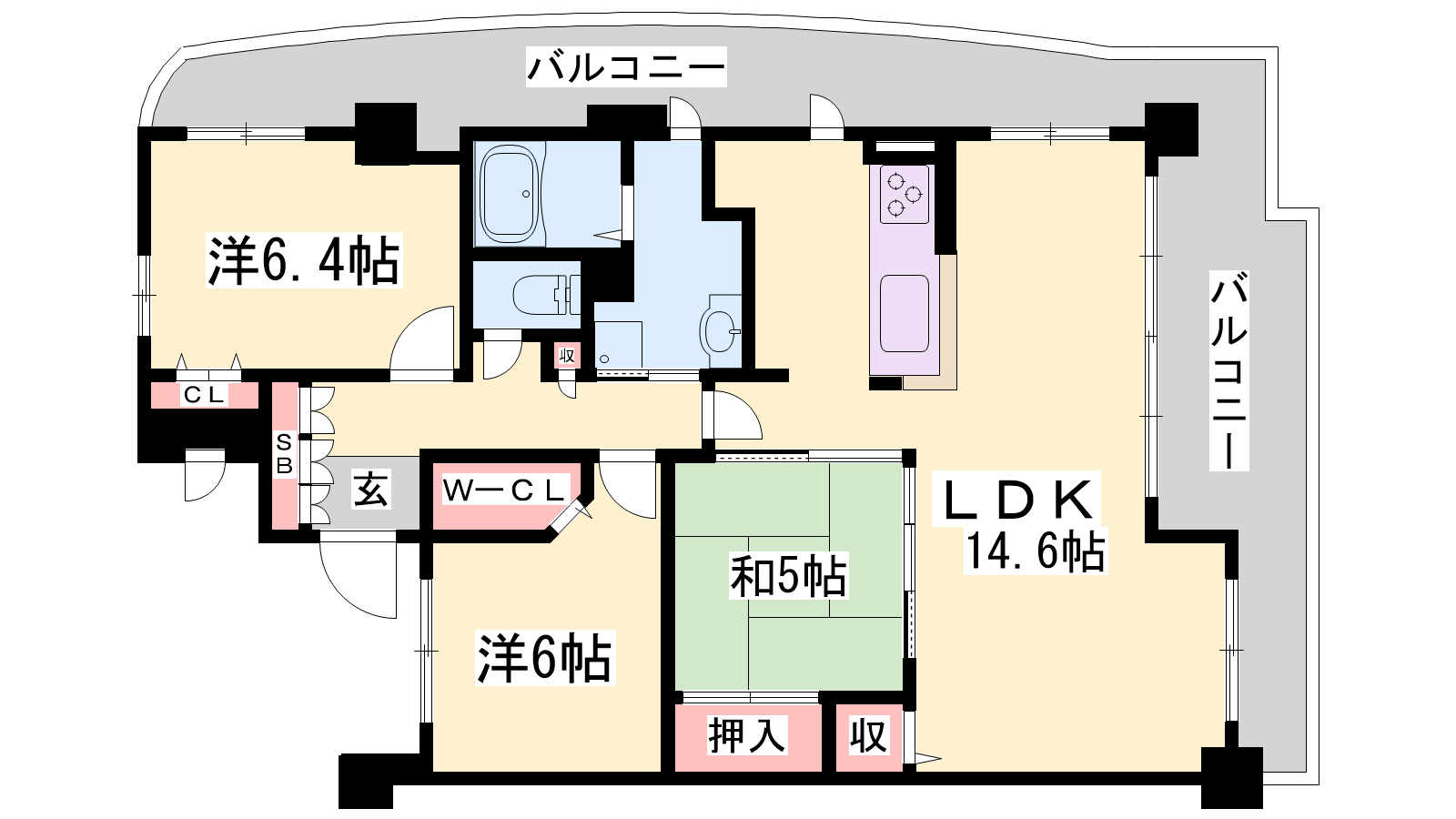 - LDK14.6帖、洋室6.4帖、洋室6帖、洋室6帖、洋室5帖