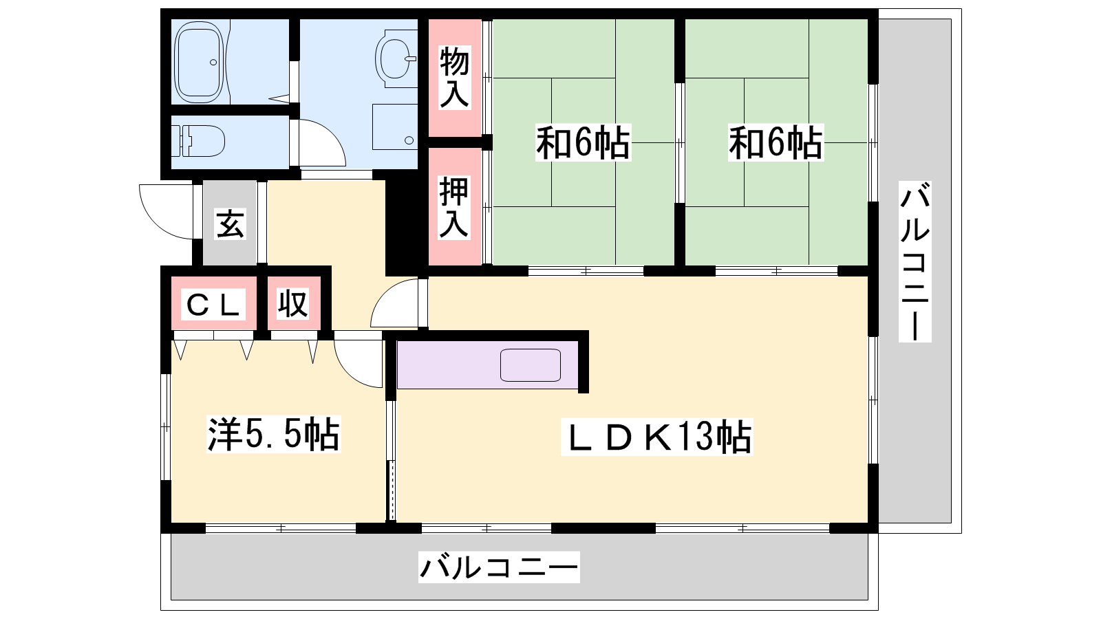 - LDK13帖、洋室5.5帖、和室6帖、和室6帖