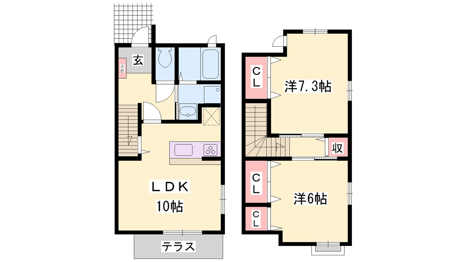 - LDK10帖、洋室6帖、洋室7.3帖