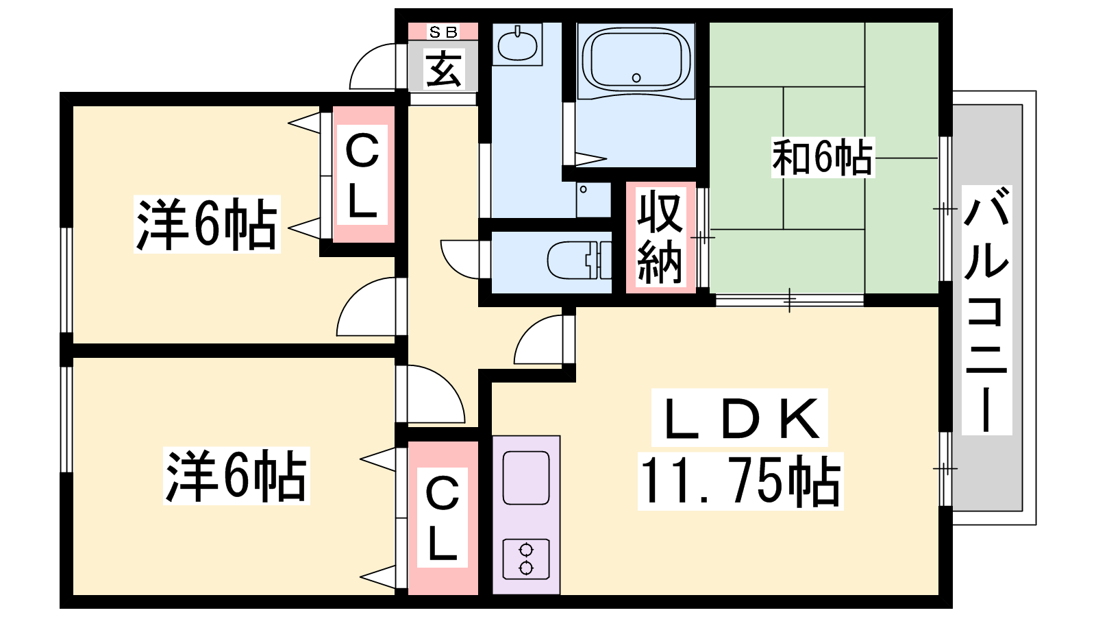 - LDK11.75帖、洋室6帖、洋室6帖、和室6帖