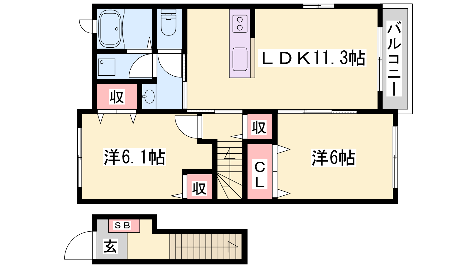 - LDK11.3帖、洋室6帖、洋室6.1帖