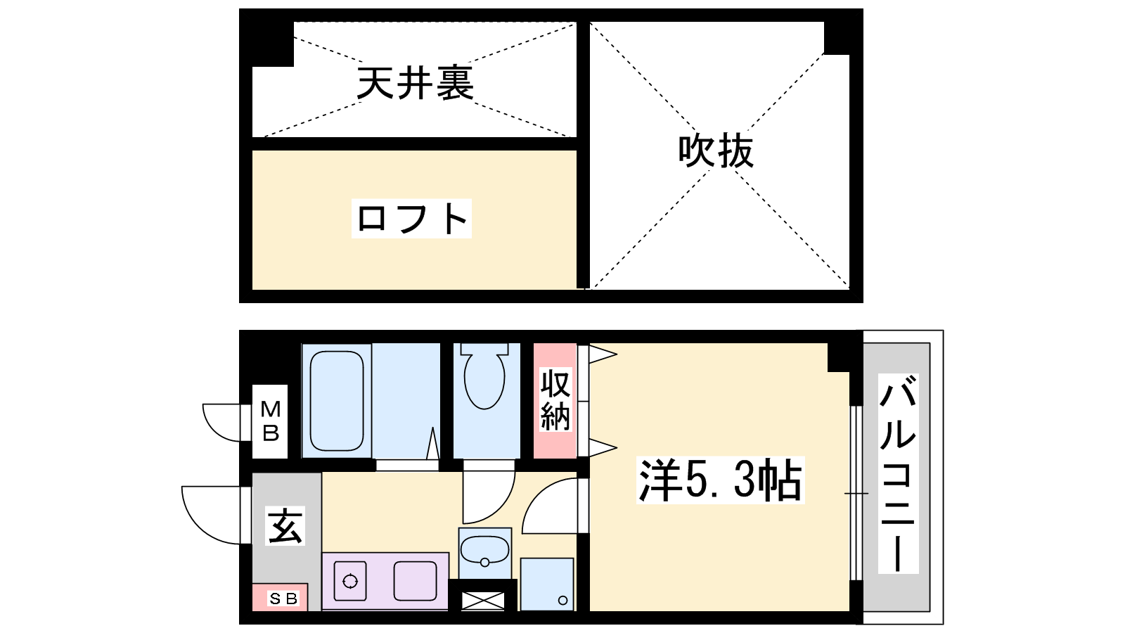 - K3帖、洋室5.3帖