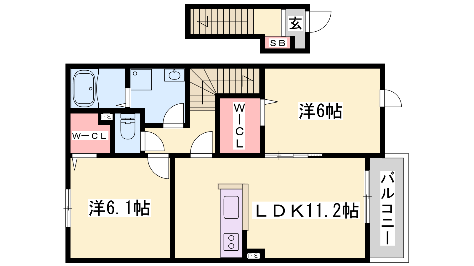 - DK8帖、洋室6.1帖、洋室6.1帖