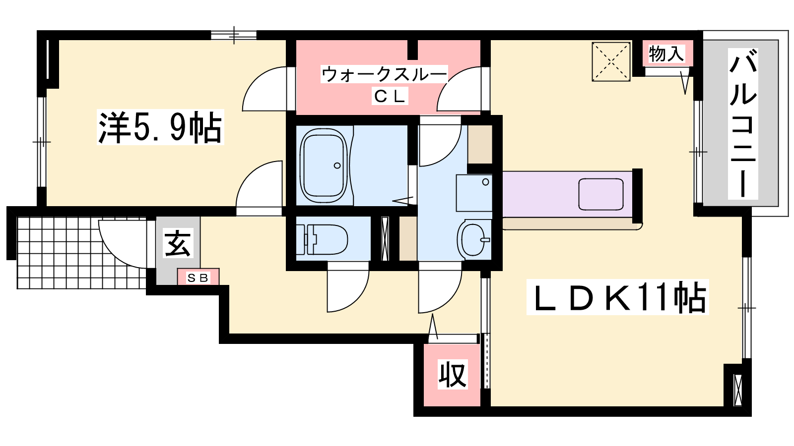 - LDK11帖、洋室5.9帖