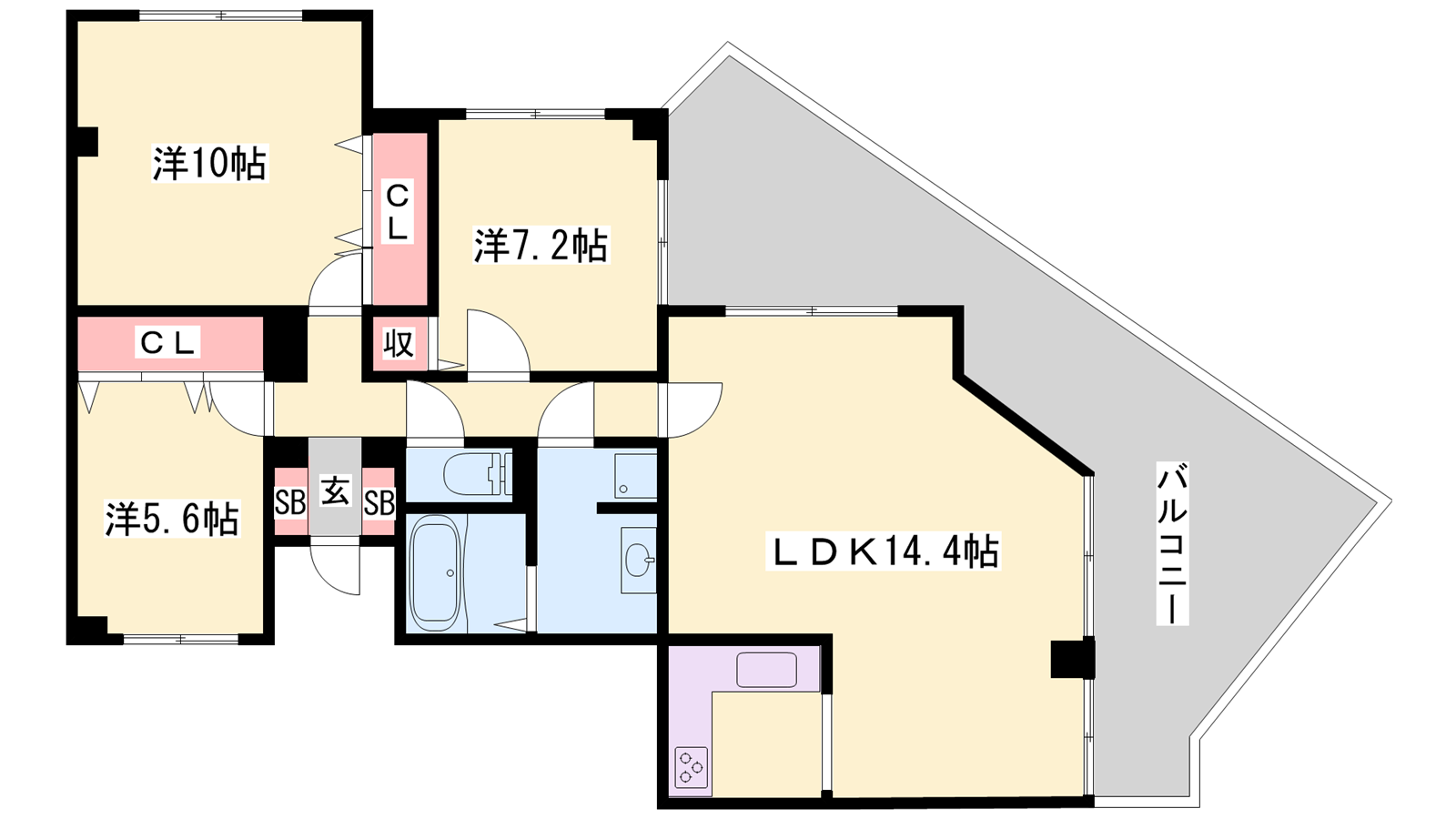- LDK14.4帖、洋室10帖、洋室7.2帖、洋室5.8帖