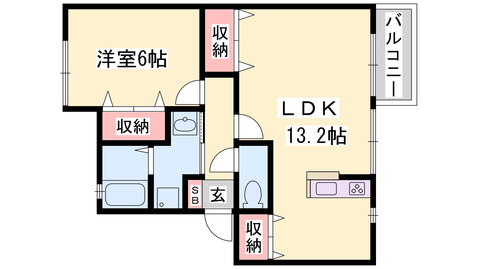 - LDK13.2帖、洋室6帖