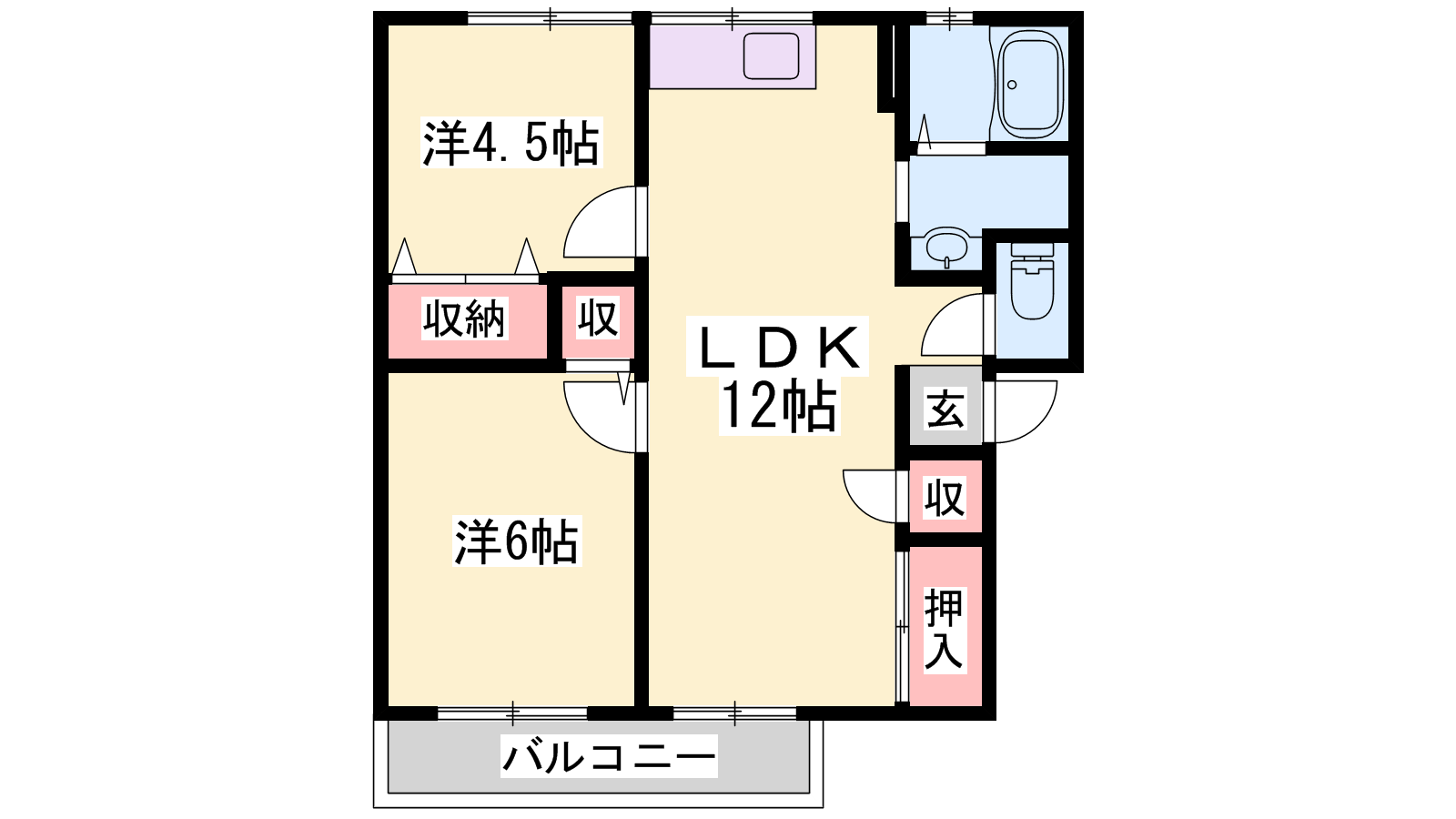 - LDK12帖、洋室6帖、洋室4.5帖