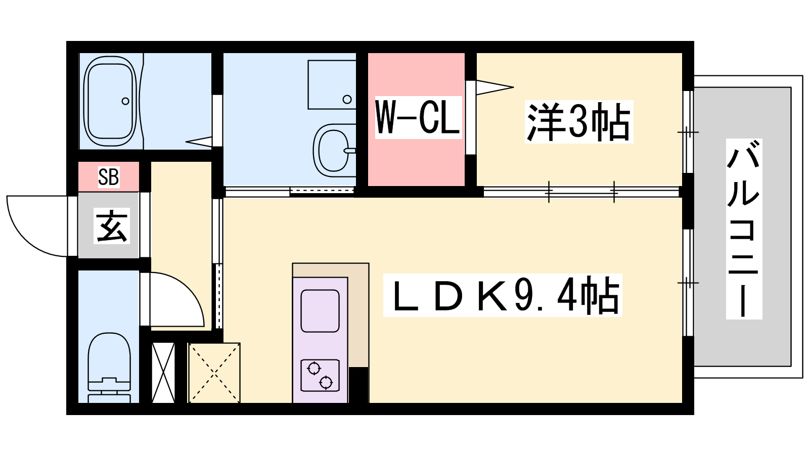- LDK9.4帖、洋室3帖