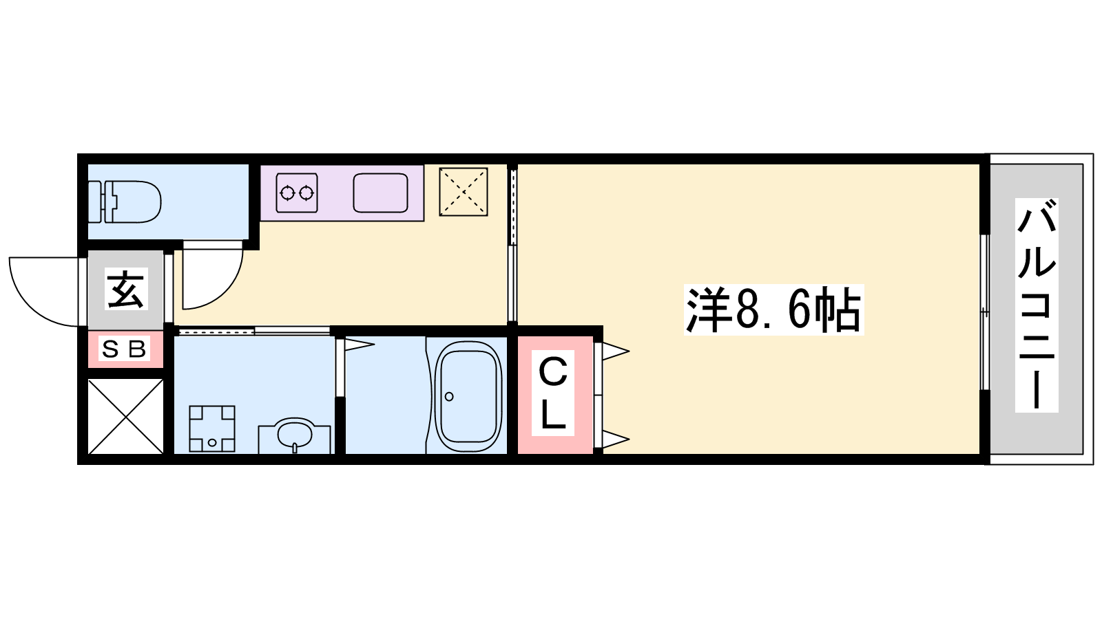 - K2.5帖、洋室8.6帖