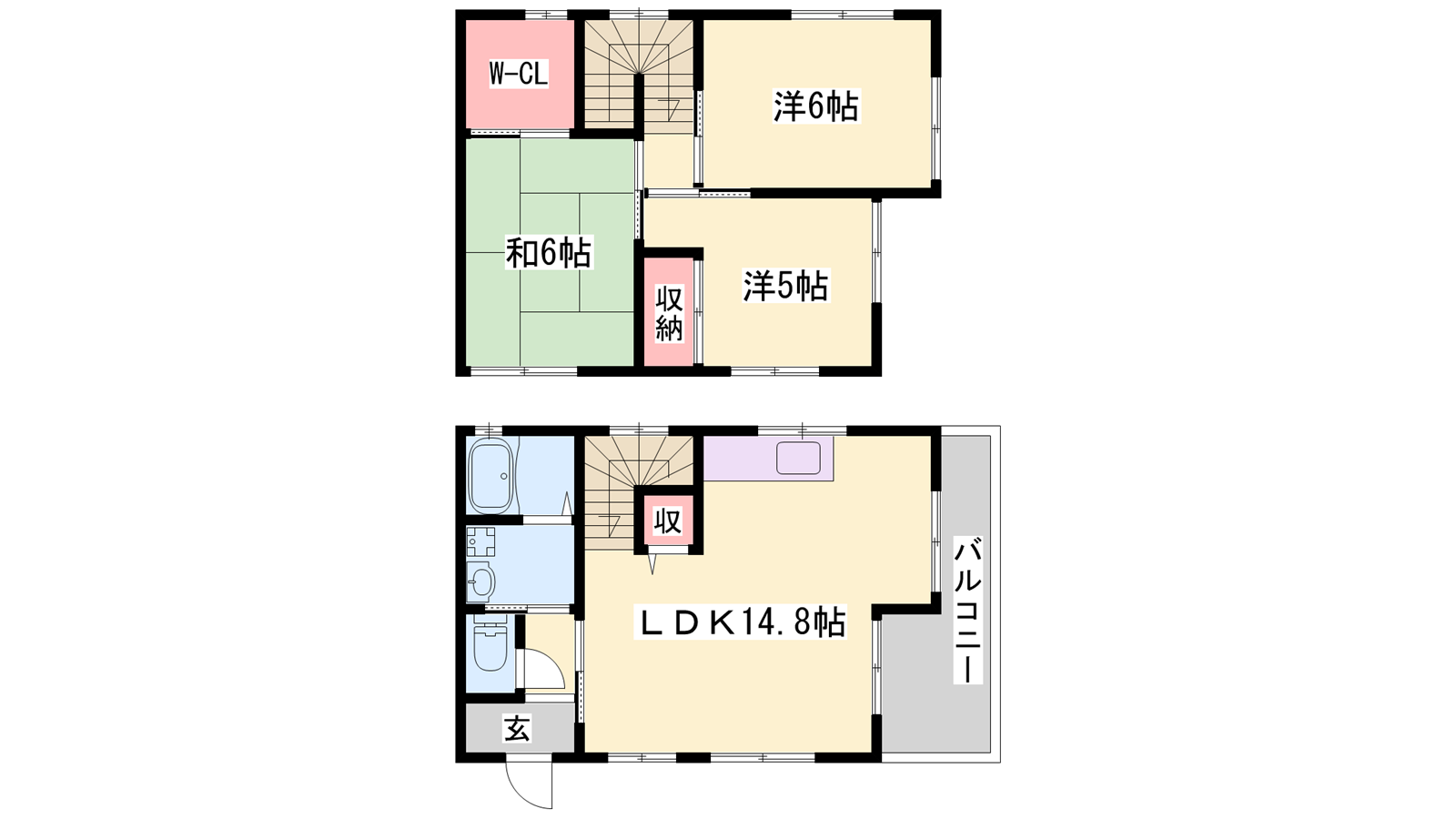 - LDK14.8帖、洋室6帖、洋室5帖、和室6帖