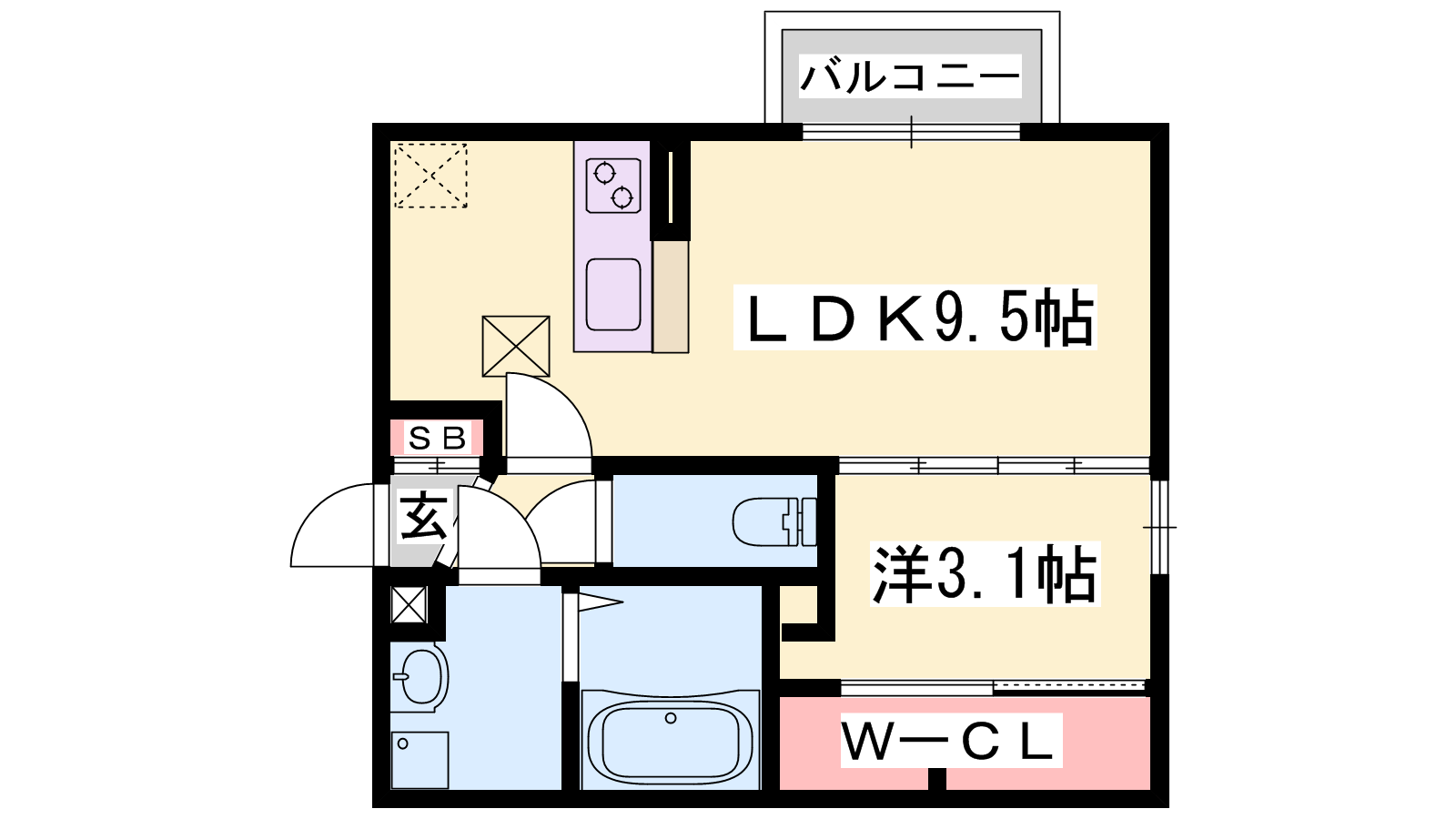 - LDK9.5帖、洋室3.1帖