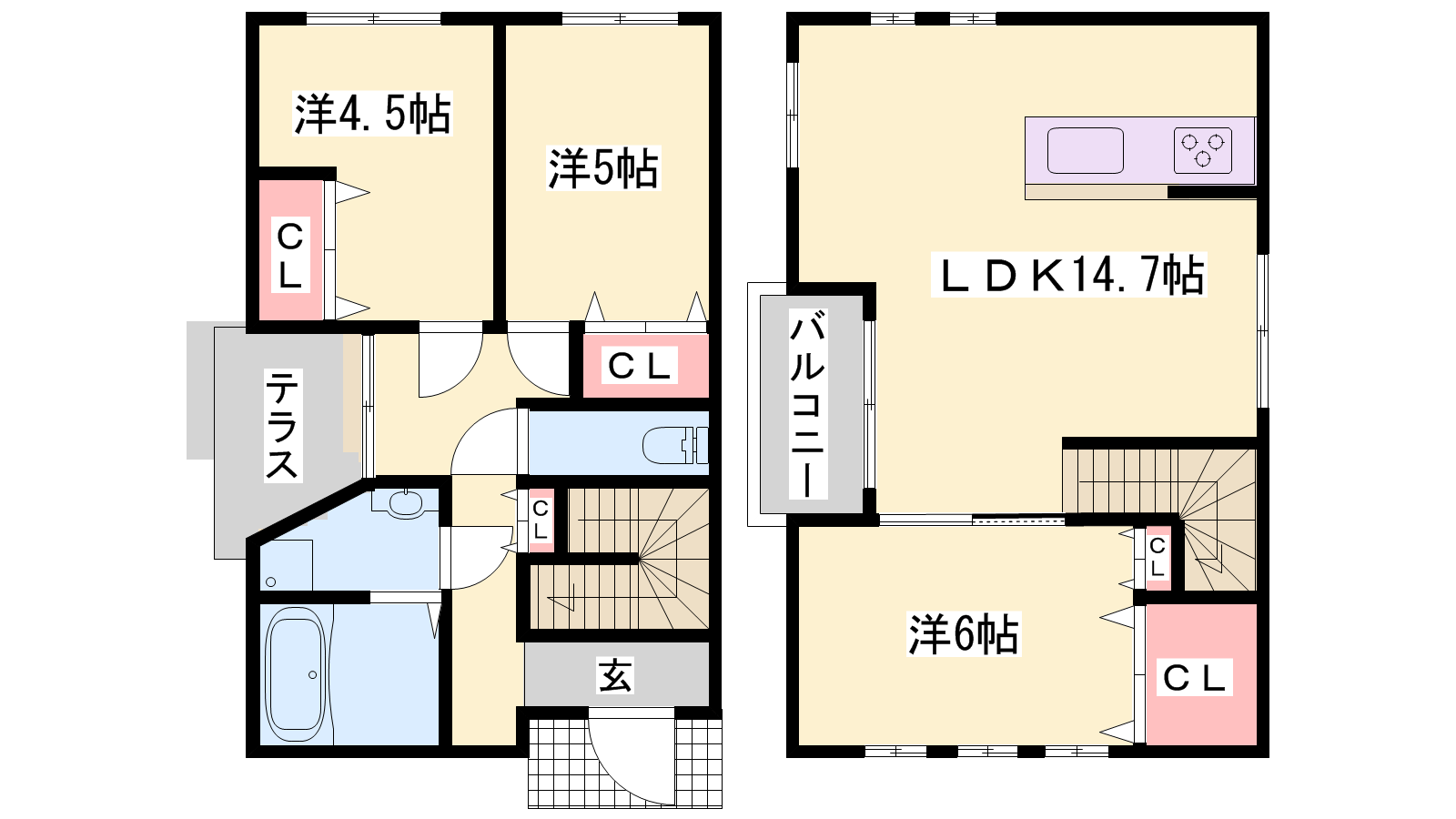 - LDK14.7帖、洋室6帖、洋室5帖、洋室4.5帖