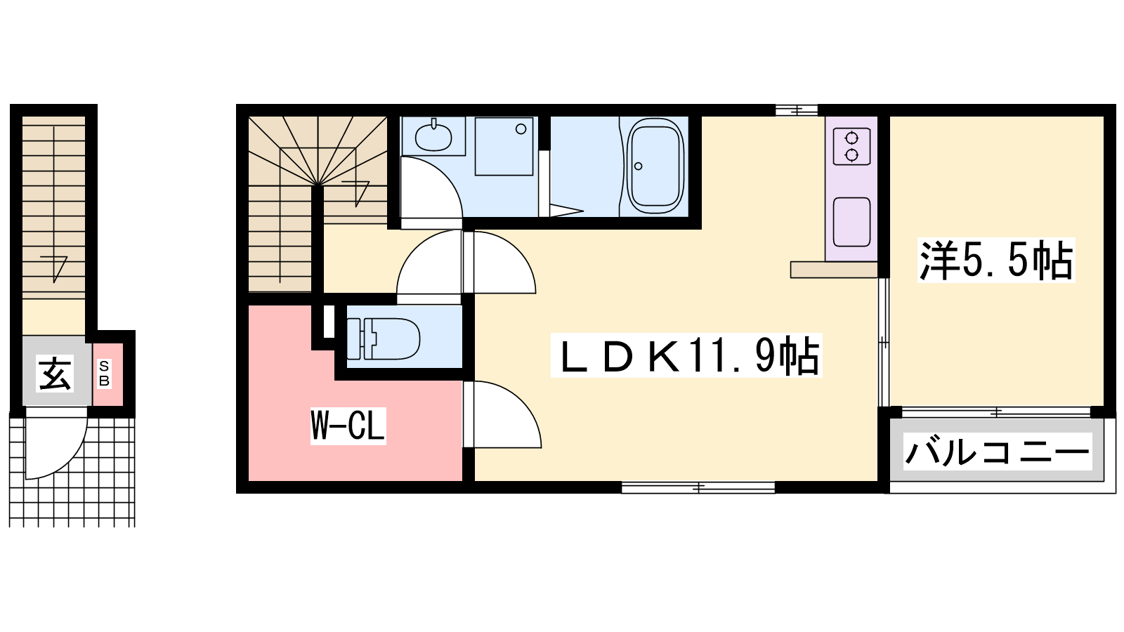 - LDK11.9帖、洋室5.5帖