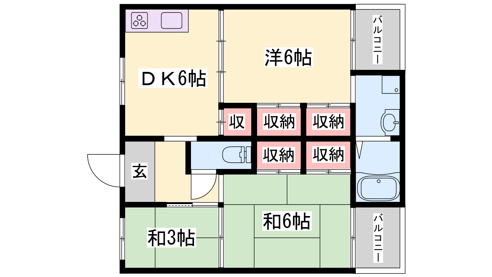 - DK6帖、洋室6帖、和室6帖、和室3帖