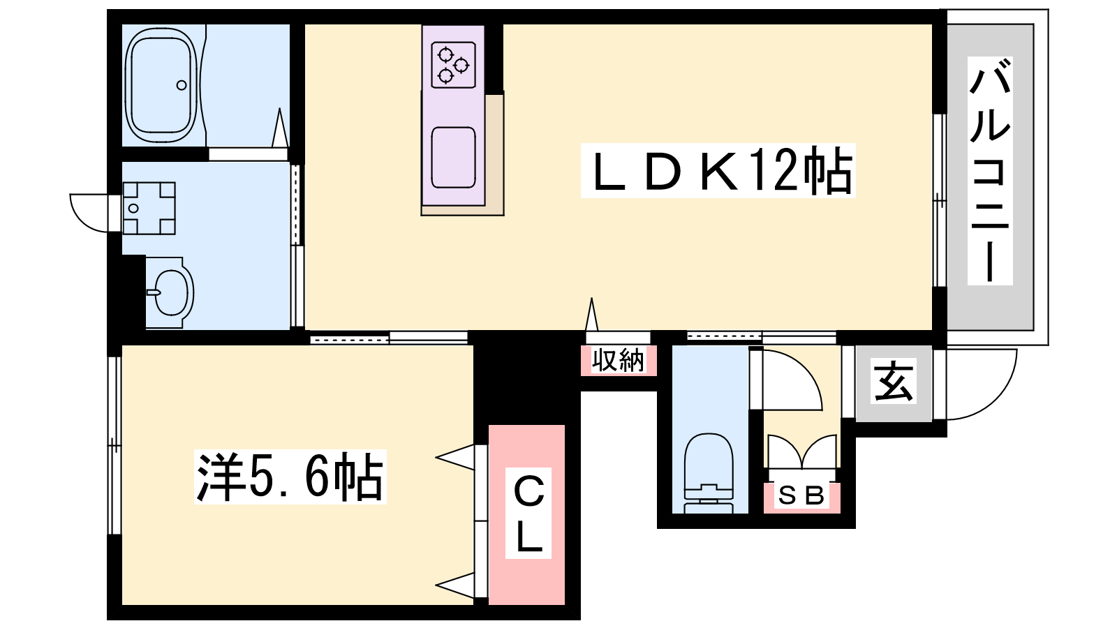 - LDK12帖、洋室5.6帖