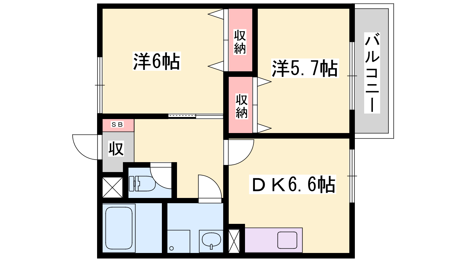 - DK7.5帖、洋室6帖、洋室6帖