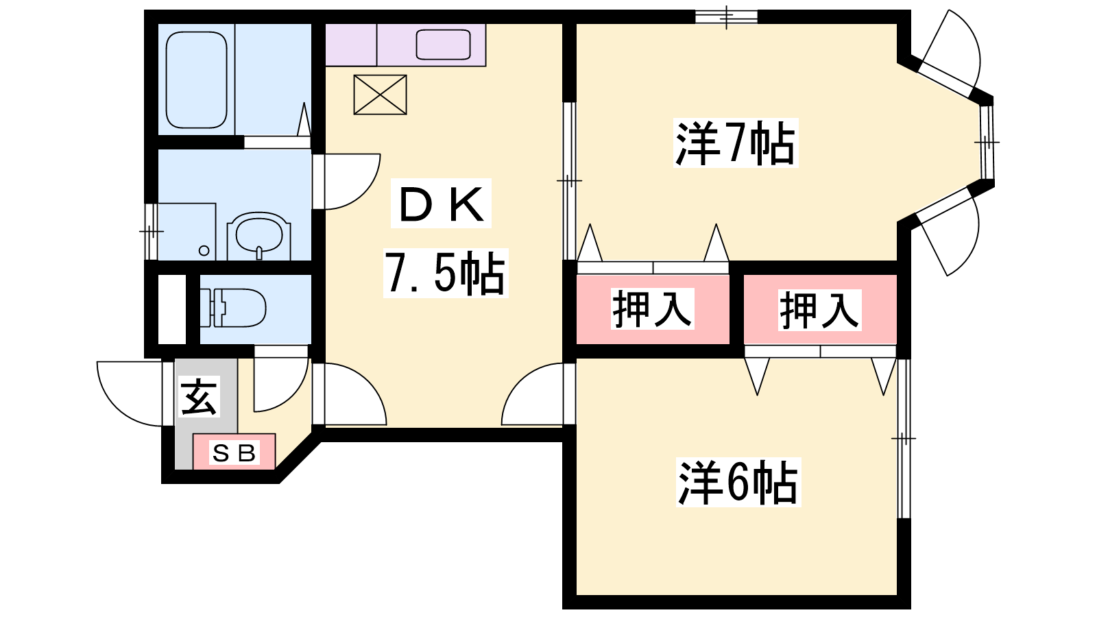 - DK7.5帖、洋室7帖、洋室6帖