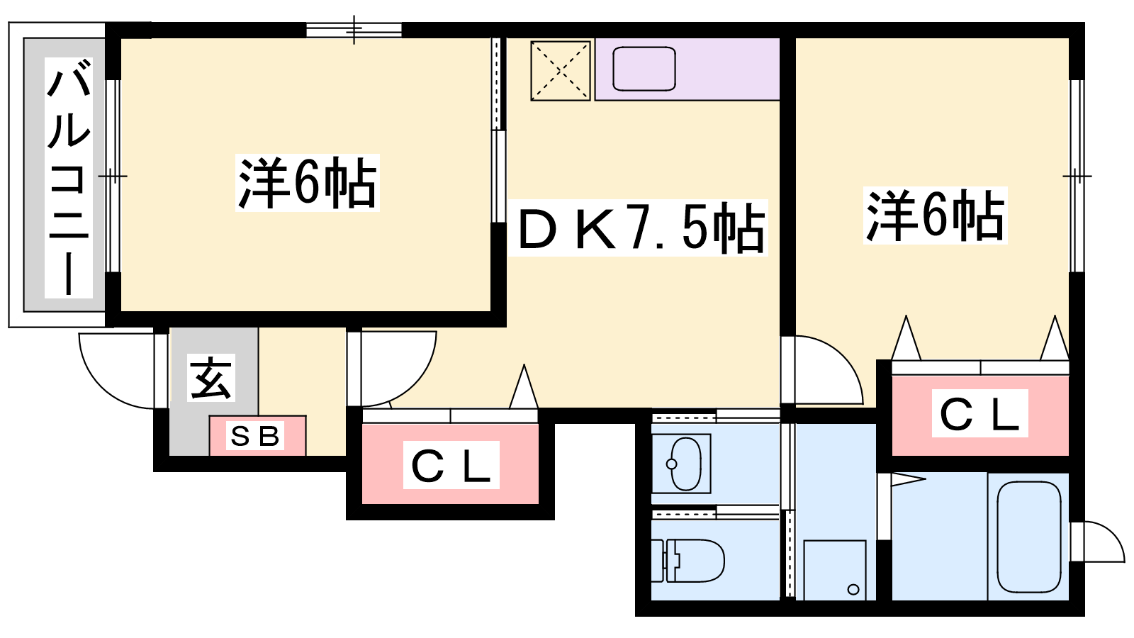 - DK7.5帖、洋室6帖、洋室6帖
