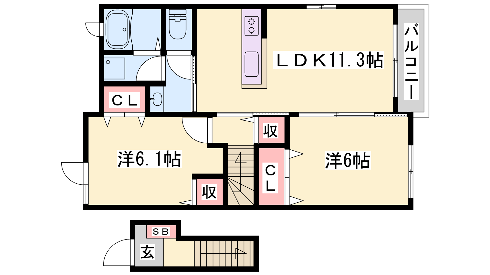 - LDK11.3帖、洋室6帖、洋室6.1帖