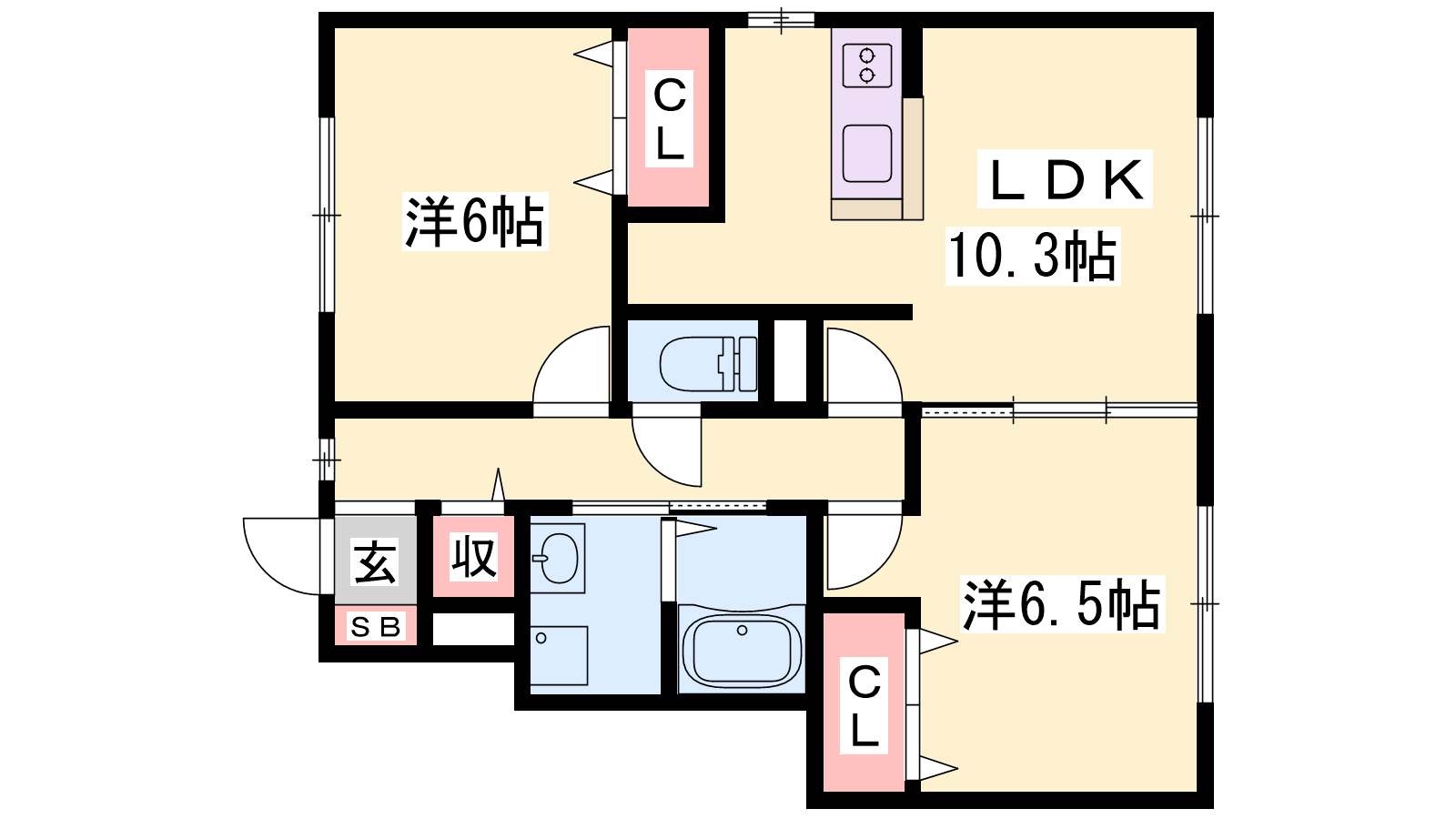 - LDK10.3帖、洋室6.5帖、洋室6帖