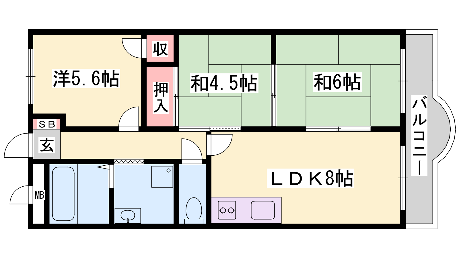 - LDK8帖、和室6帖、和室4.5帖、洋室5.6帖