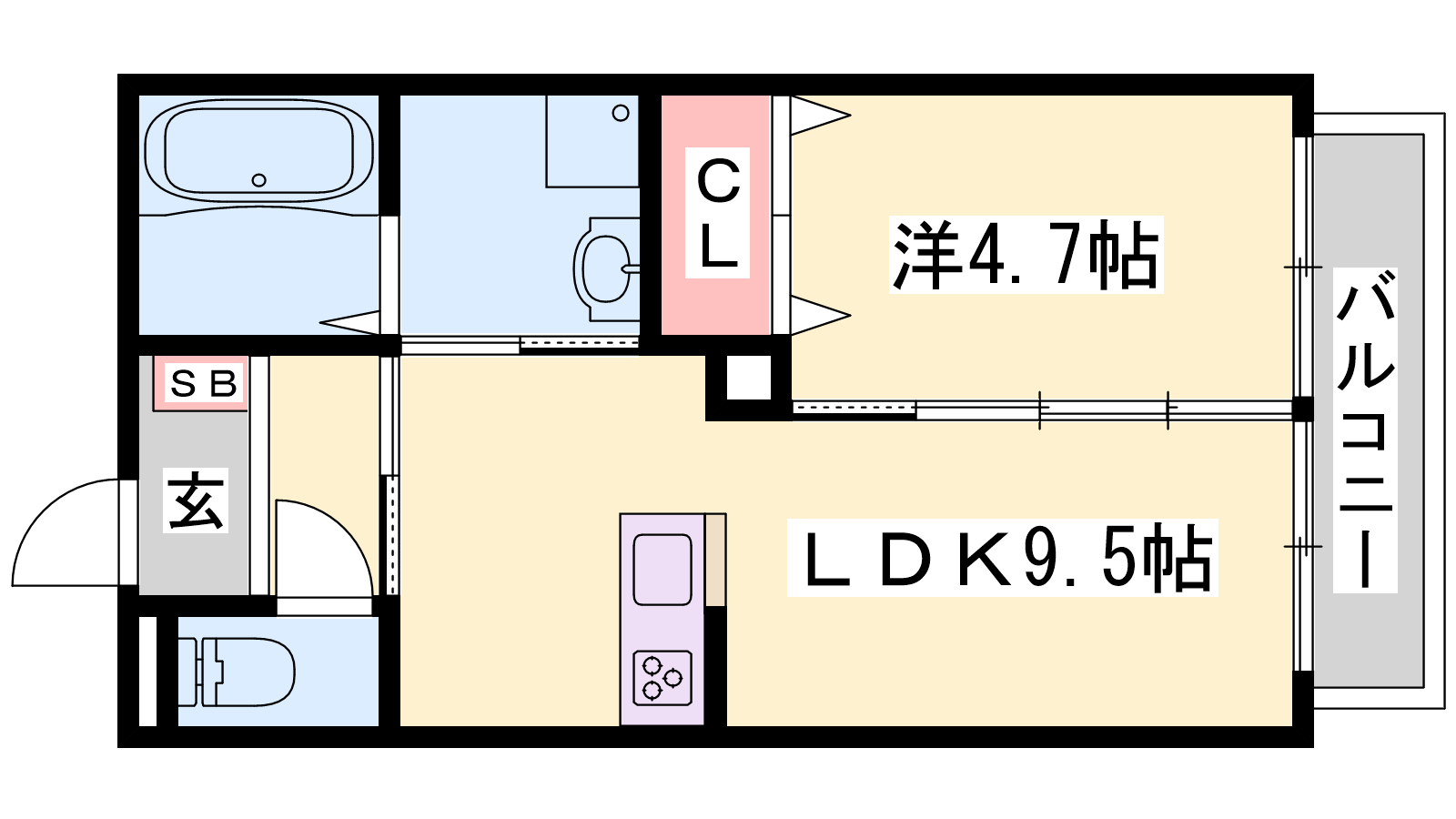 - LDK9.5帖、洋室4.7帖