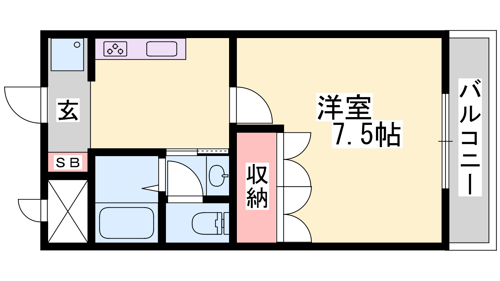 - K2帖、洋室7.5帖