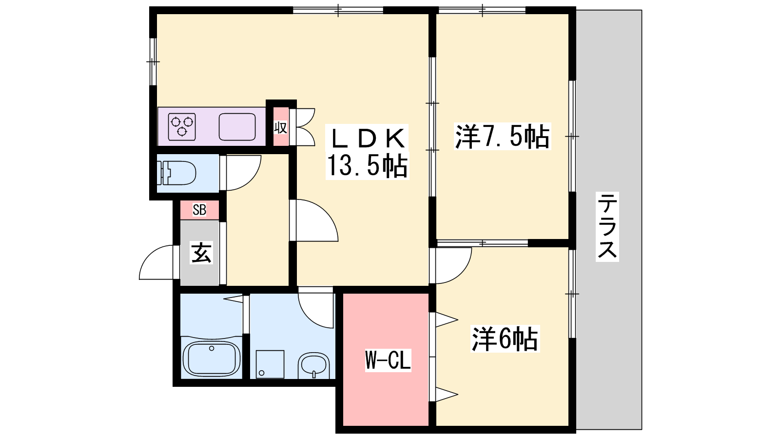 - LDK13.5帖、洋室7.5帖、洋室6帖