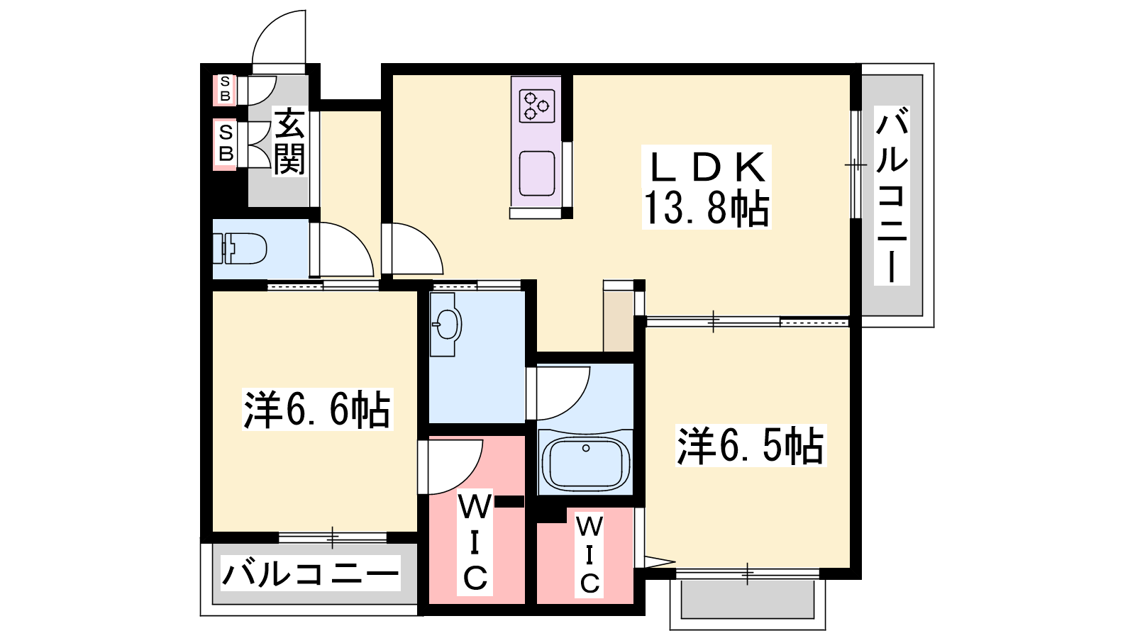 - LDK13.8帖、洋室6.5帖、洋室6.6帖
