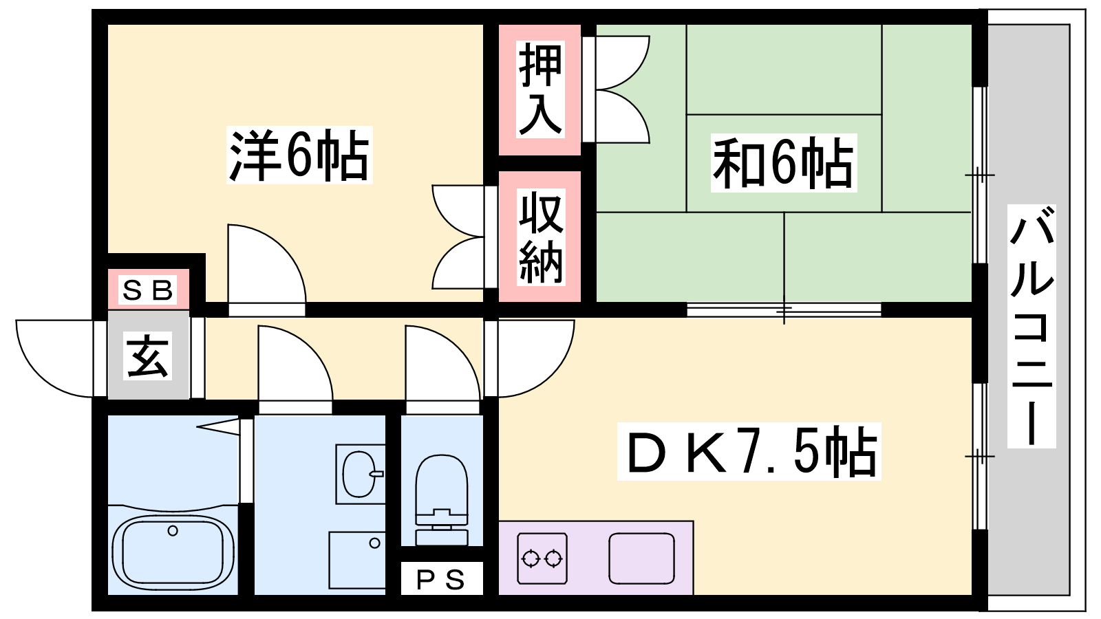 - LDK7.5帖、洋室6帖、和室6帖