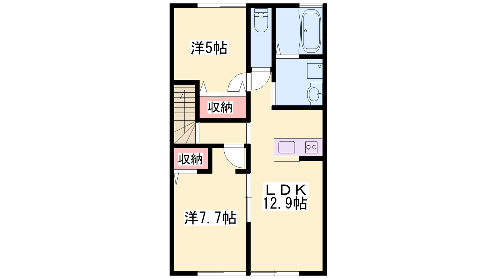 - LDK12.9帖、洋室7.7帖、洋室5帖