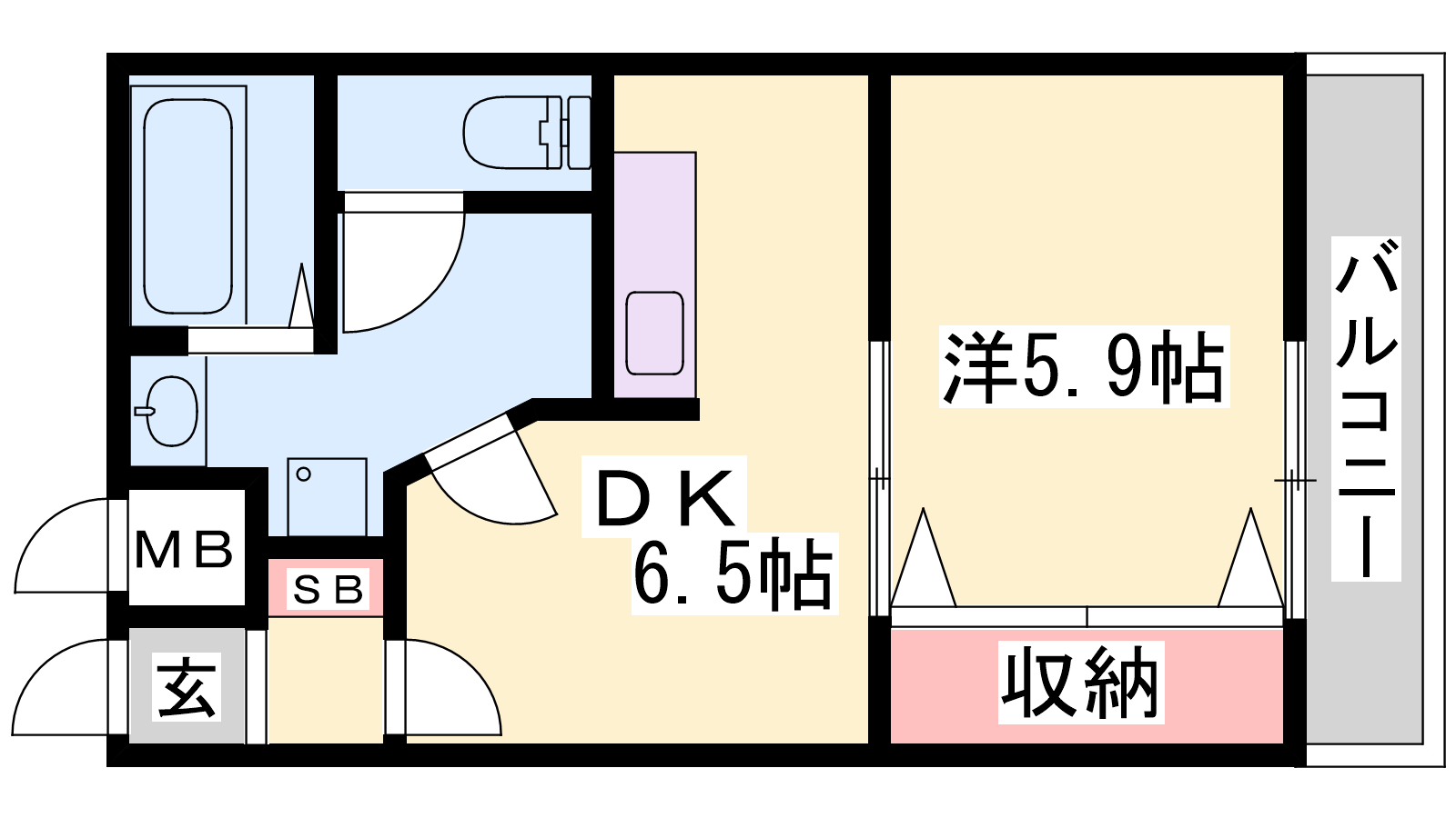 - DK6.5帖、洋室5.9帖