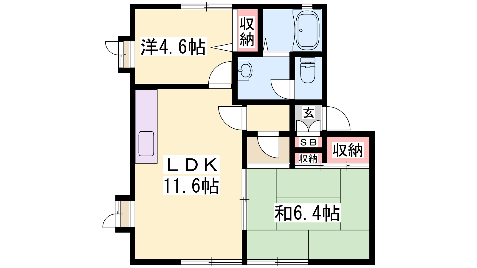 - LDK11.6帖、洋室4.6帖、和室6.4帖