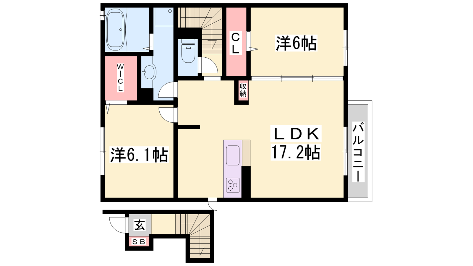 - LDK17.2帖、洋室6.1帖、洋室6帖