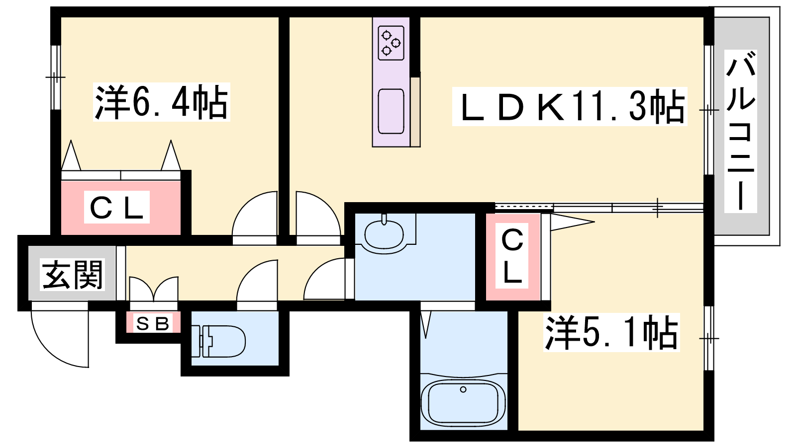 - LDK11.3帖、洋室6.4帖、洋室5.1帖