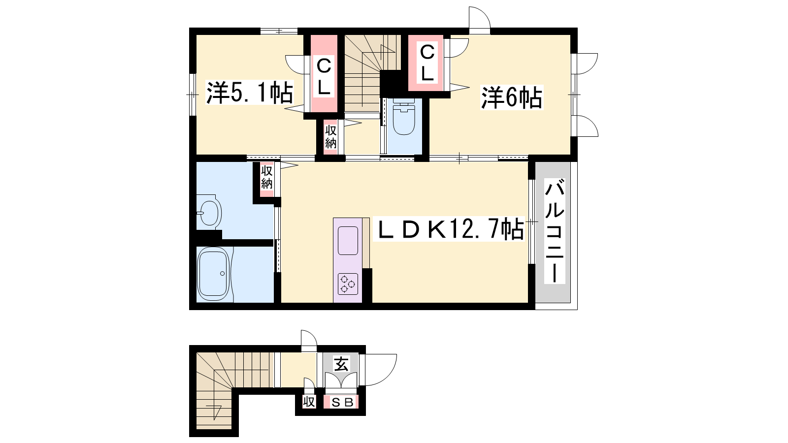 - LDK12.7帖、洋室6帖、洋室5.1帖