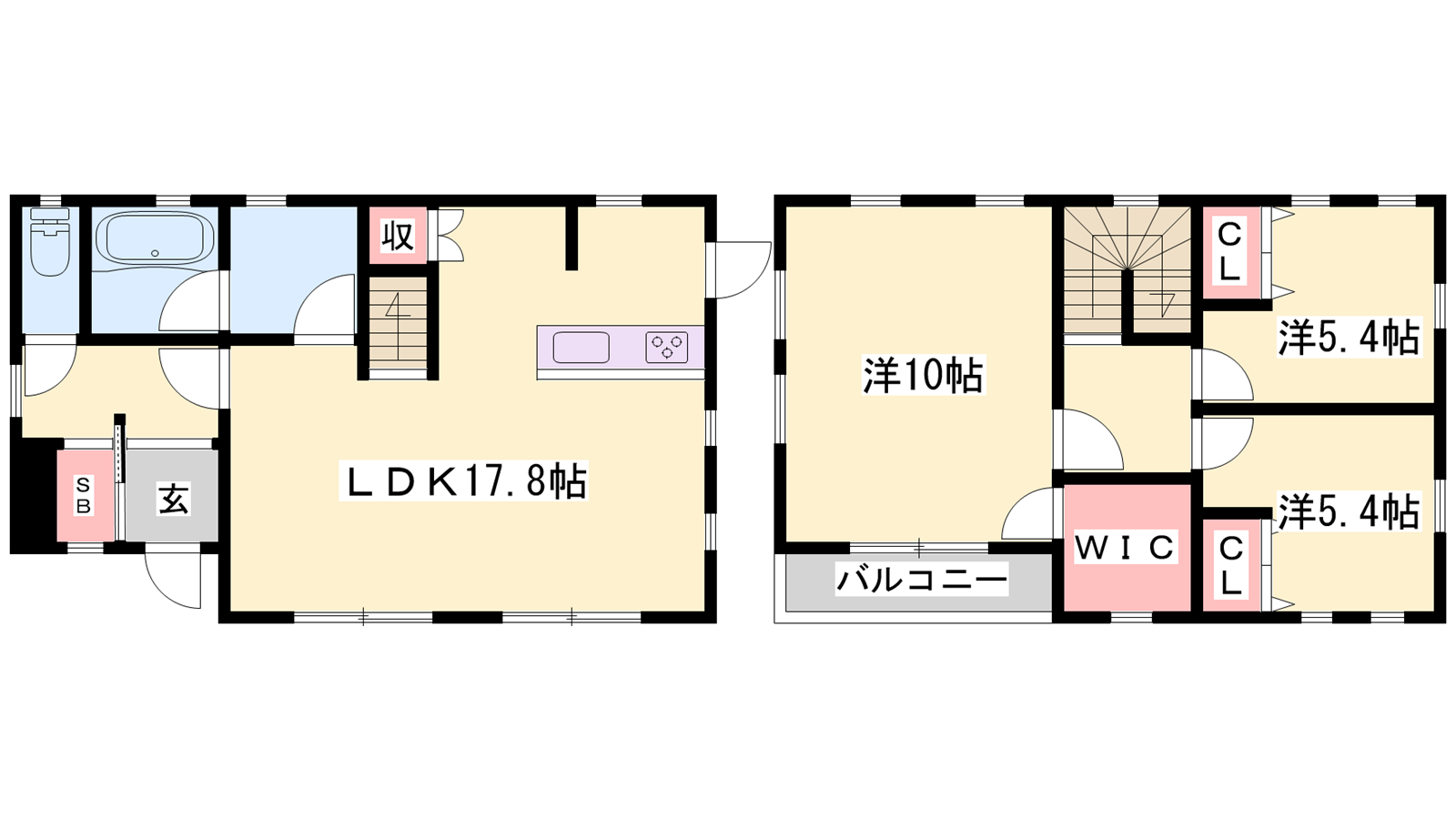 - LDK17.8帖、洋室10帖、洋室5.4帖、洋室5.4帖