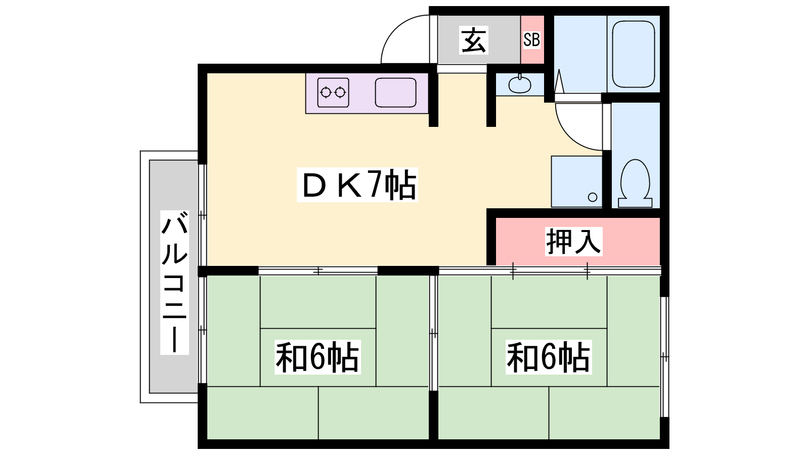 - DK7帖、和室6帖、和室6帖